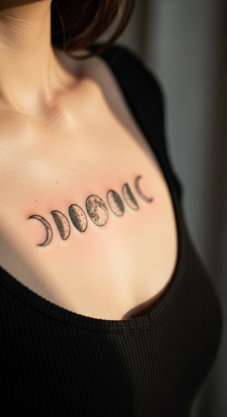 Moon phases on your ribcage tell a story of time and change. They add a poetic element to your side. Select a few crescents in a row. This costs around $65 at a local spot. Trace phases on your body with a washable pen—free start. Moon temporary tattoos cost $5 and stick easily. Use simple curves for ease. This placement stays hidden under tops but feels intimate. Moon tattoos fade less with sunscreen. Keep to 2 inches total for clarity. Add stars between phases for whimsy. Use a phone filter to mock it up.