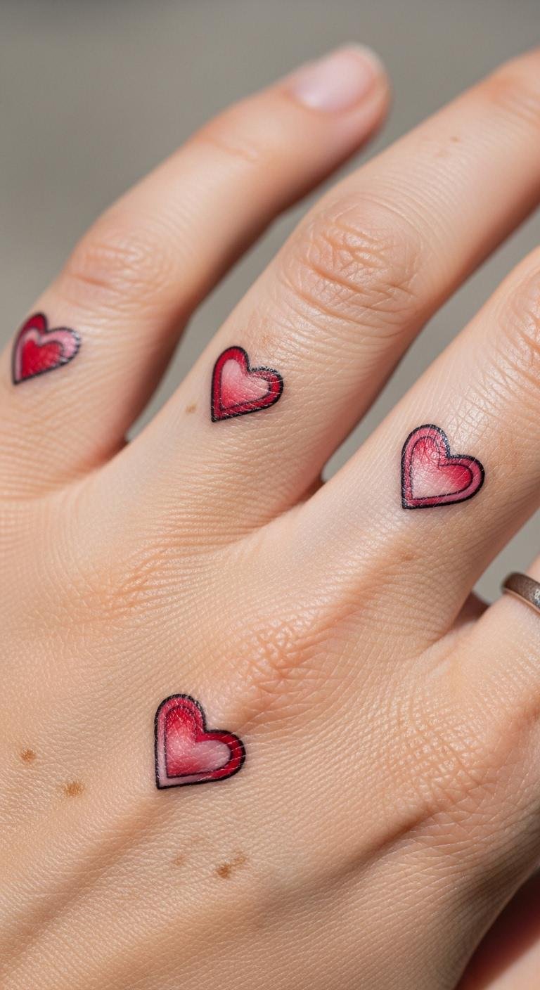 A cluster of tiny hearts on your hand spreads love subtly. They represent connection in a sweet design. Opt for three small hearts. This is about $40 to get. Draw hearts with a pen on your hand—quick and free. Heart temporary designs cost $1 each. Use basic shapes for charm. This area glides under rings but adds flair daily. Heart tattoos work on busy hands with care. Make each under 0.5 inches. Group them creatively for fun. Use nail art pens for home trials.