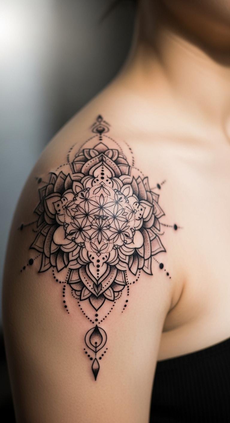 This mandala meaning highlights unity of mind and body. See it as a tool for wholeness. You exercise. You meditate. Pick a tattoo that links these parts. Go practical. Use a notebook to plan your design. Draw linked shapes freehand. It saves money. Start with a circle and add crossing lines. Keep sentences short. Focus on the center. This design reminds you to align thoughts and actions. Bold the point: mind-body link. Place it on your back for a personal touch. For DIY fun, use string art with household items. Tie strings in patterns on a board. It’s cheap and effective. Do this weekly to build the habit.