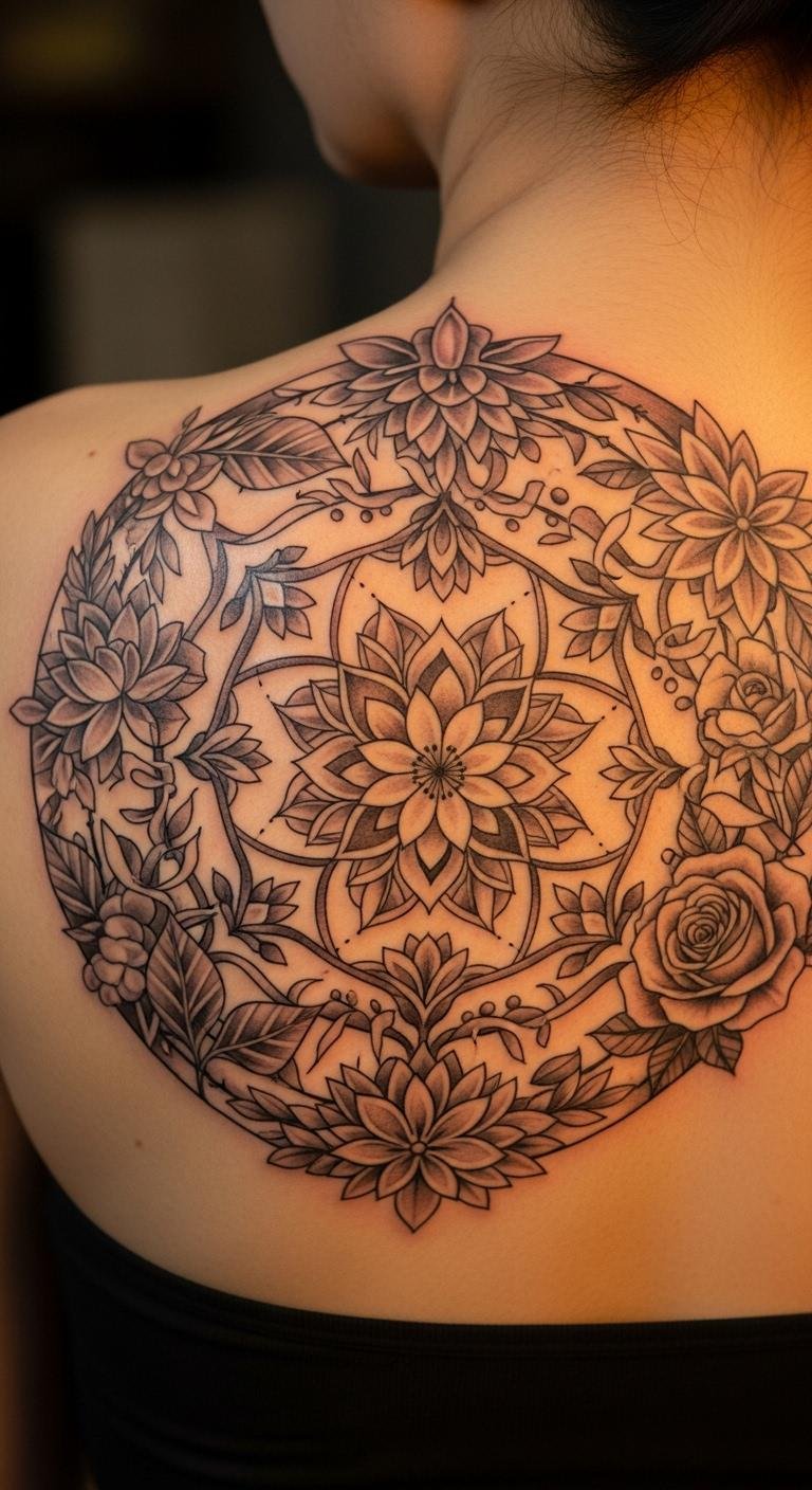 Rebirth shines in mandala tattoos. Think of it as a fresh start. You overcome. You rise. Choose a design with blooming elements. Keep it simple. Draw buds on napkins with pens. Build your version. Start small. Add petals gradually. Bold the theme: renewal through blooms. Tattoo it on your side. Use leaves from your yard for DIY stamps. Free and natural. This celebrates your comebacks.