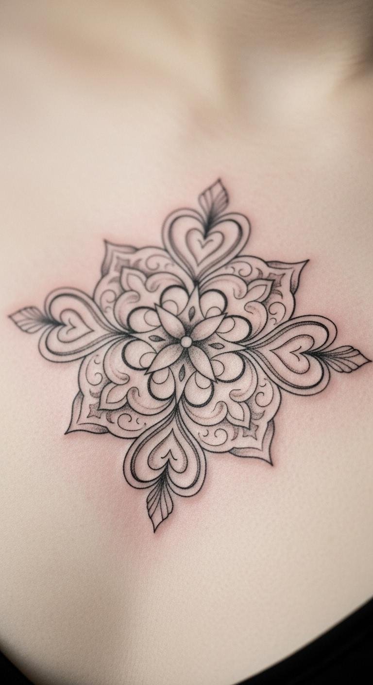 Love and compassion shine in mandalas. Think of it as a hug. You care. You share. Choose heart-centered designs. Simple tip. Draw hearts in circles. Make your own. One at a time. Bold the hearts: compassion circles. Tattoo close. Use fabric for patterns. From home. This spreads warmth.