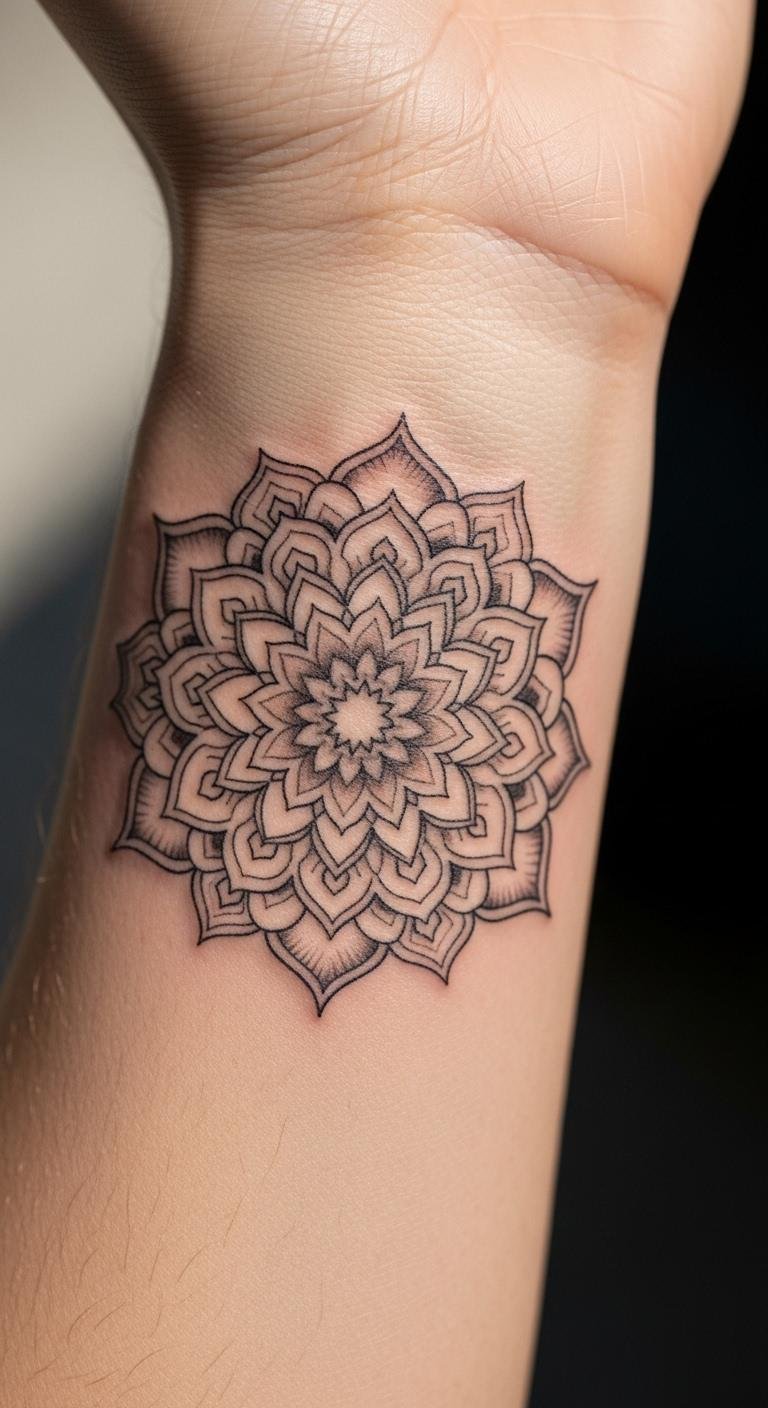 A mandala tattoo often stands for balance. Think of it as a reminder to steady your daily routine. Life gets busy. You juggle work and rest. Get a design that mirrors this idea. Start simple. Sketch a basic circle on paper with even lines. Add patterns like triangles for stability. This costs nothing. Use free apps on your phone to experiment. Bold the key: balance in design. Place it where you see it often, like your wrist. This helps you pause and breathe. Try a DIY version first. Draw on your hand with henna. It’s affordable and washes off. Focus on even spacing. Over time, this practice brings real calm.