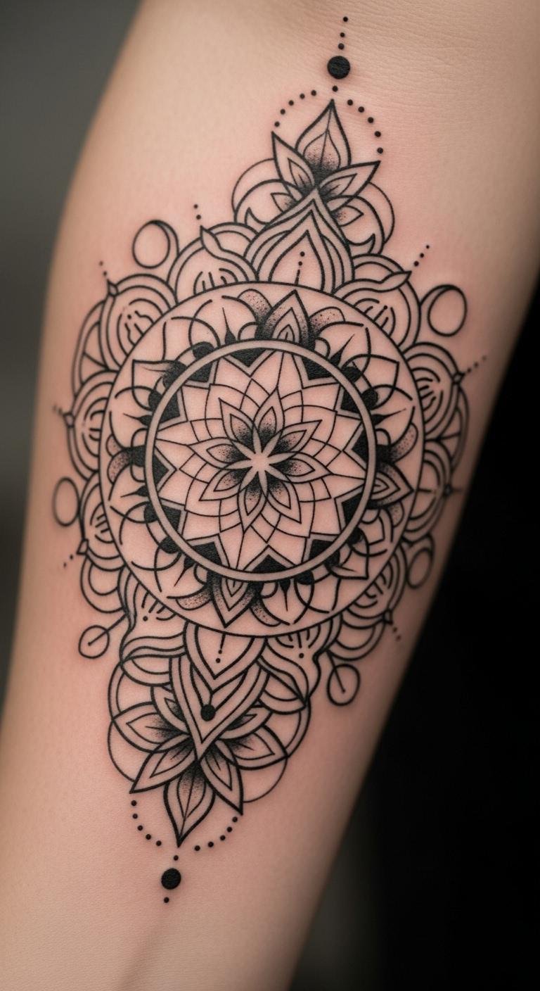 Dotwork precision defines mandala tattoos. Think of it as pointillism. You focus. You detail. Choose dot patterns. Practical advice. Poke holes in paper with a pin. Create dots. Simple and free. Bold the dots: precise points. Tattoo small spots. Use a marker for DIY practice. Under $1. This hones your attention.