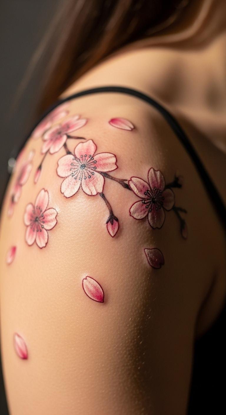 Cherry blossoms symbolize life’s fleeting beauty. Shoulder placement adds grace. Paint ideas with watercolors at home. It’s affordable creativity. Find blossom artists with packages. Use monochrome for savings. Add personal elements. This builds quiet strength. Try fabric transfers first.
