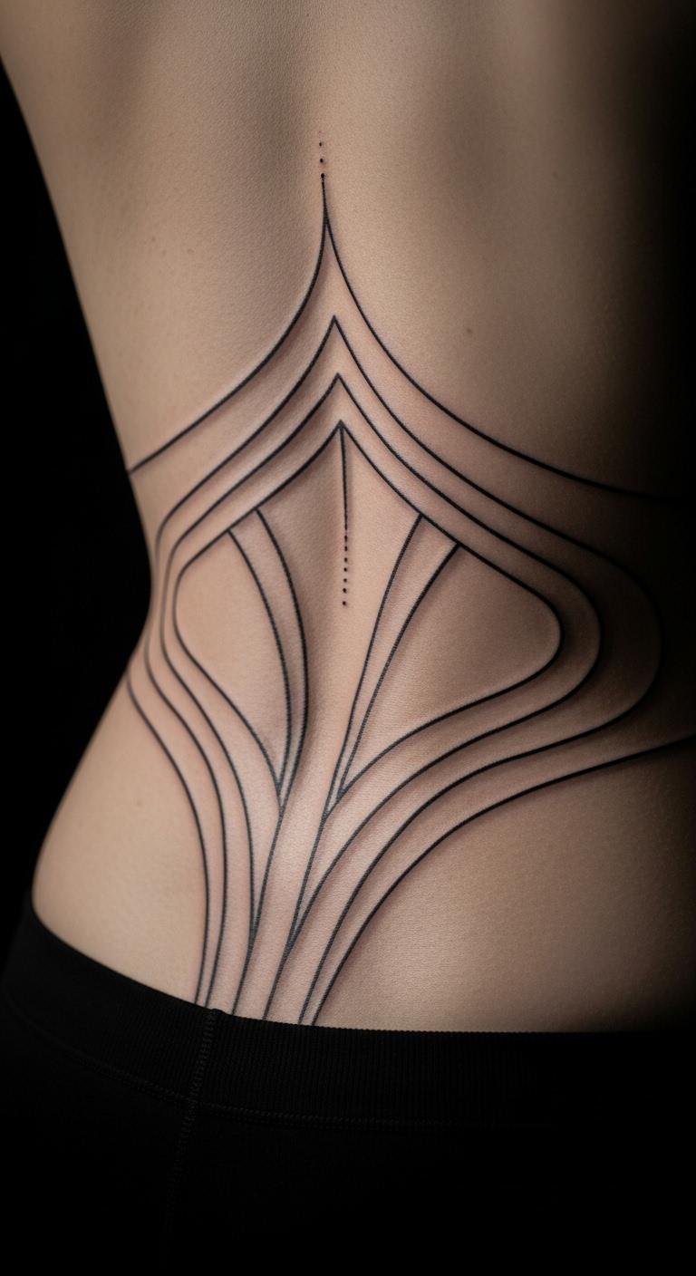 Lower back geometric elements mix subtlety and strength. They represent order with angles and lines. Hide it under clothes if you like. Budget $70 for the session. Practice drawing geometries on your back with a mirror; it’s free and helpful. Look for experienced artists to avoid extras. The design stays sharp with care. Use it as a hidden boost, enhancing your inner confidence.