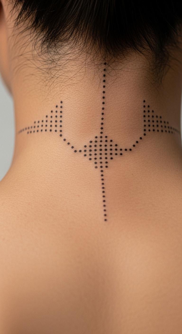 Neck dot patterns offer a starry arrangement. They represent constellations on your skin. Place them low on the neck for cover. This runs $60; watch for promotions. Dot patterns on paper first; it’s a free way to design. Choose artists versed in patterns. Dots add a unique flair. Let this setup spark your confidence with its mystery.