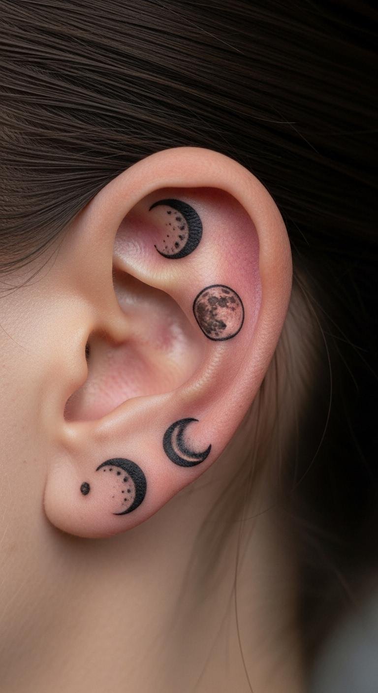 Moon phases behind the ear evoke cycles and change. They represent personal growth in a minimalist form. Place it where hair can cover it if needed. Budget for $50 or less at a local artist. Sketch phases on paper to visualize; it’s a no-cost way to decide. Choose artists who do celestial themes to keep things simple. The design fades less with proper care. Let it serve as a quiet reminder of your journey, enhancing your sense of self.