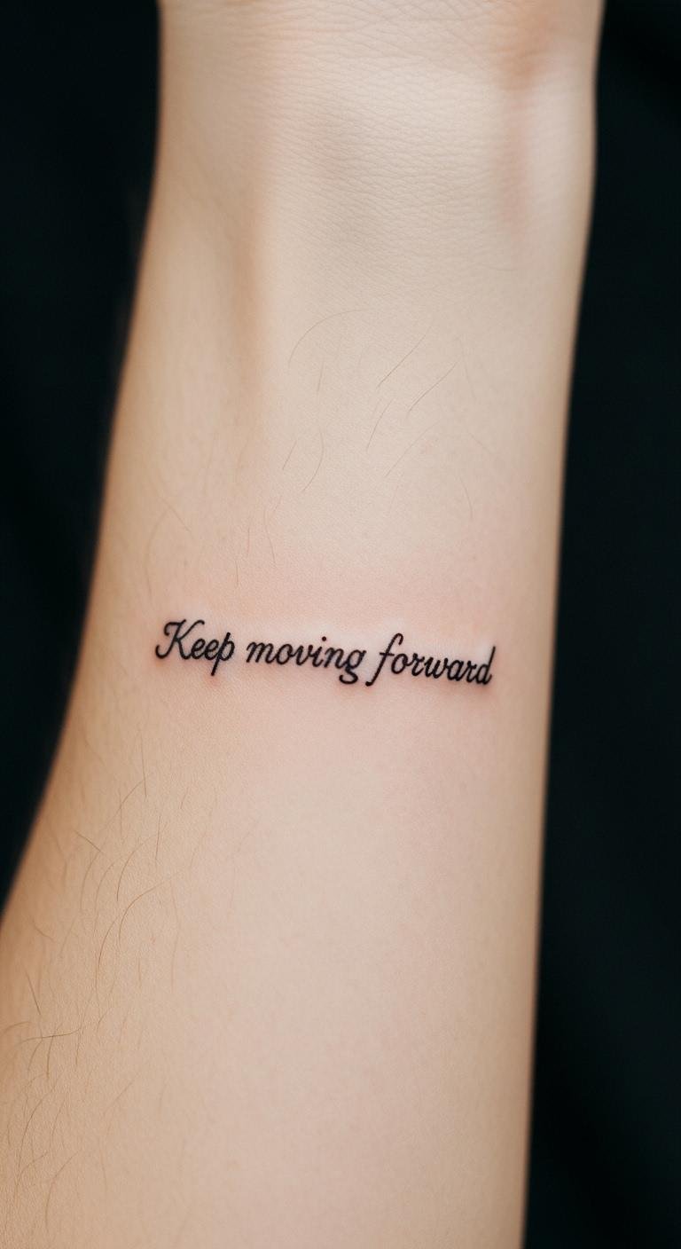 Minimalist quote phrases share words that matter. They express thoughts like “be here” in neat script. Choose your inner arm for visibility. Expect $60; compare prices online first. Write phrases in different fonts on paper; this helps pick one without extras. Find budget artists who handle text well. Keep it short for quick sessions. Let these words inspire you daily, adding a layer of assurance through their meaning.