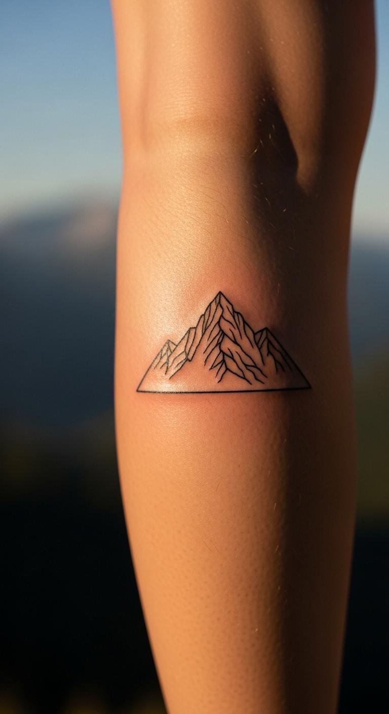 Mountain peaks with triangular lines show strength. Calf works well. Keep peaks sharp. Look for peak artists at low costs. Forums suggest. Draw peaks on a pad. Plan heights. Go with lines. Do it swiftly. Legwear covers. This tattoo represents adventure. Apps let you try. View options. Care with basics. Your peaks endure. Climb your path.