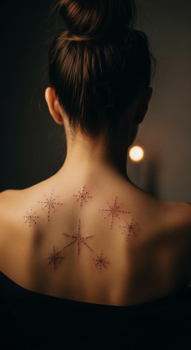 Star clusters with dot groups sparkle subtly. Back offers space. Arrange dots neatly. Seek cluster deals from artists. Reviews point way. Dot stars on paper. Create clusters. Use few dots. Get it cheap. Tops conceal. This tattoo twinkles. Tools simulate. Check placement. Maintain easily. Your stars guide. Shine bright.