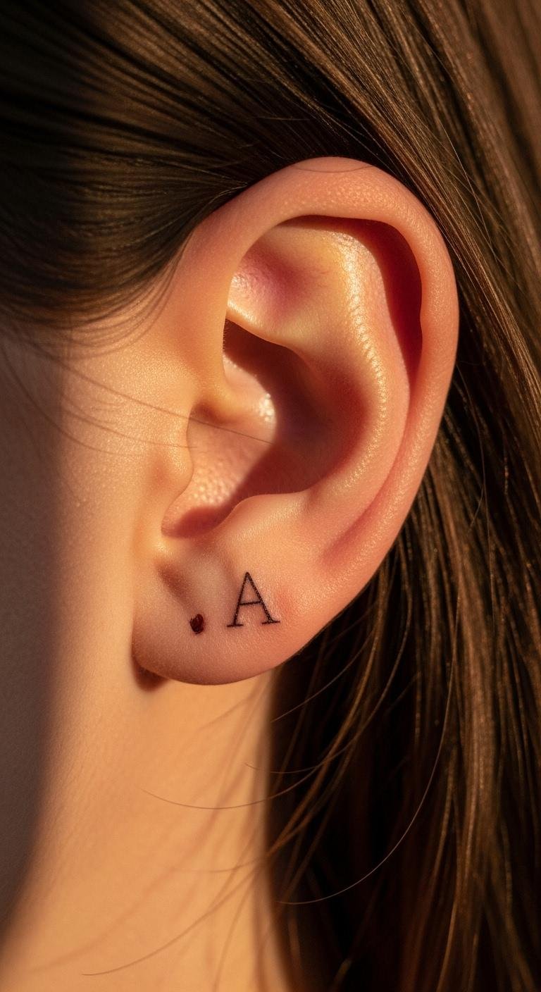 Initials behind your ear make a personal, hidden tattoo. Use one straight line for the letter. It’s ideal for something just for you. Search for inexpensive artists near home. Many do quick jobs at lower prices. Practice drawing letters on a mirror first. This gives you a clear idea. Choose plain ink to keep things cheap. Finish in a single, short session. Hide it with hair or earrings as needed. This spot feels private yet cool. Virtual tools on your phone let you test it fast. Just upload a selfie. Treat the area with soap you already have. Your initial stays neat over time. Make it a secret symbol of your story.