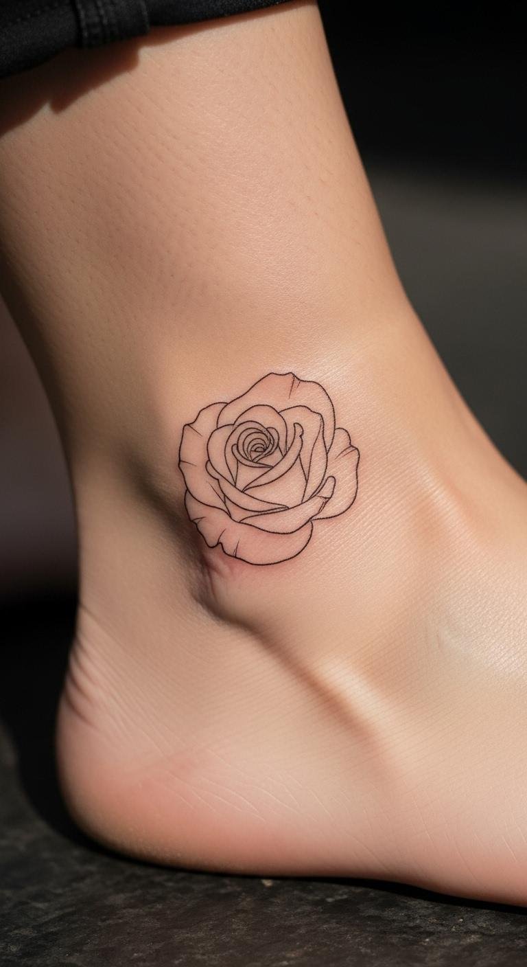 A simple rose tattoo carries deep meaning, like love or growth. Put it on your ankle for easy access. Keep the lines basic to stay minimalist. Find artists with affordable packages online. Look for ones who specialize in flowers. Draw a rose sketch at your desk first. It helps pick the right size. Go with black outlines to cut expenses. Do it in one quick appointment. Pair it with socks if you want cover. This design tells your tale without extras. Use free apps to preview on your body. Snap and adjust in seconds. Clean with items from your bathroom. Your rose will fade less with care. Turn it into a daily inspiration.