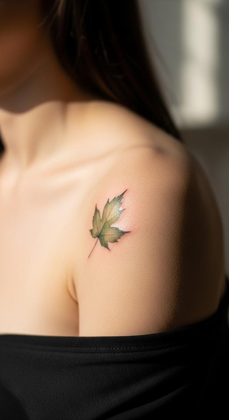 Try a watercolor leaf for a soft, blended effect. Place it on your shoulder for balance. Use light shades to keep it simple. Check for budget artists who mix styles. They might have sales for new clients. Experiment with watercolors at home on paper. See how colors flow. Opt for fewer hues to save money. Get it in a brief session. Cover with a shirt when needed. This leaf adds a natural vibe. Digital mockups on your device help plan. Just import a photo. Use household cream for aftercare. Your tattoo keeps its charm. Make it a nod to nature in your life.