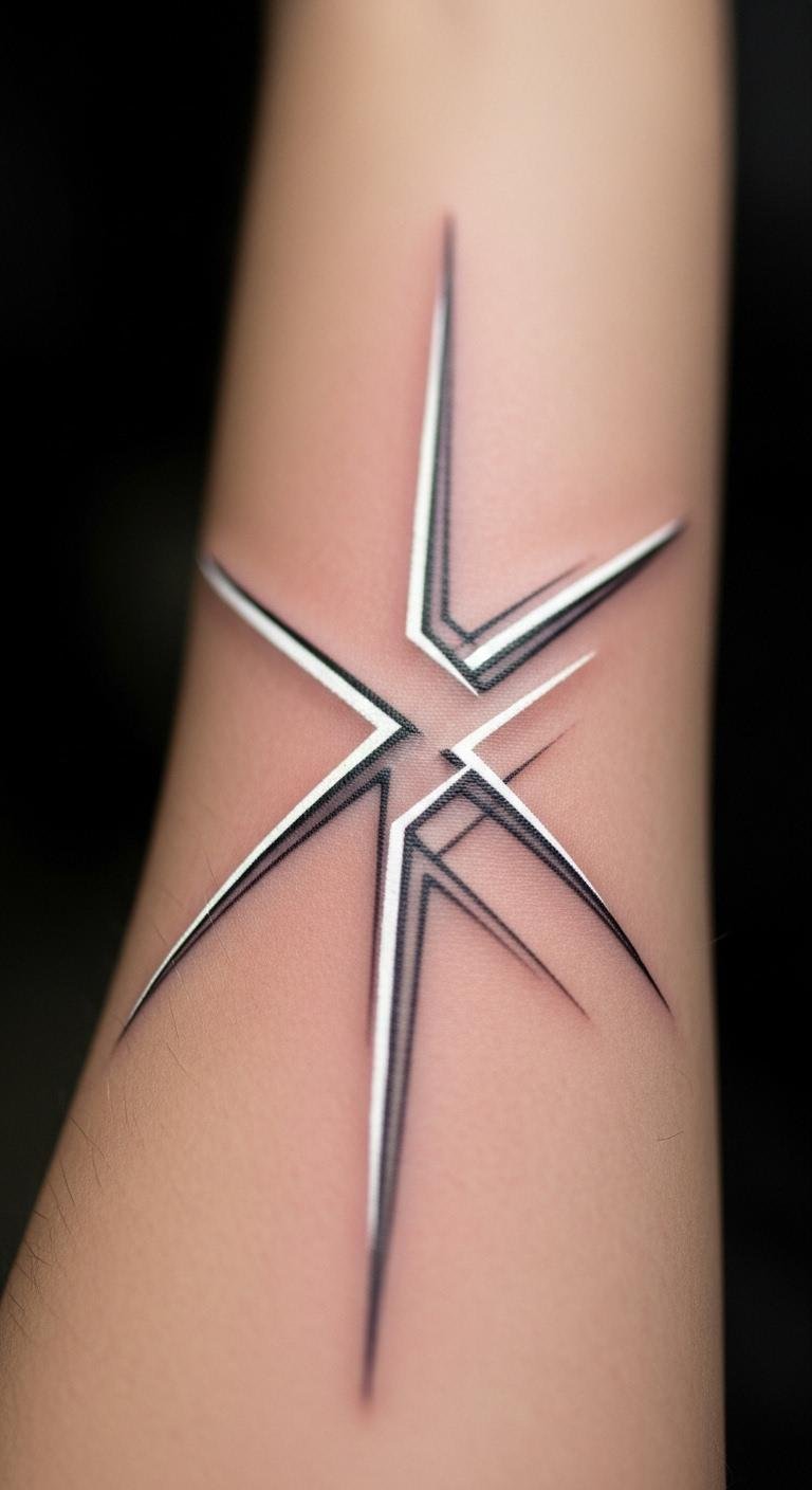 Futuristic line art brings a modern twist. Try straight lines on your forearm. It looks fresh and tech-inspired. Find affordable artists who do abstracts. Search community boards for options. Draw straight lines with a ruler at home. Test different patterns. Choose simple lines to lower the price. Do it fast in one go. Roll up sleeves to show it off. This design fits tech lovers. Free software on your phone previews it. Snap and tweak as needed. Treat with basic skin products. Your art stays crisp. Make it a fun daily feature.