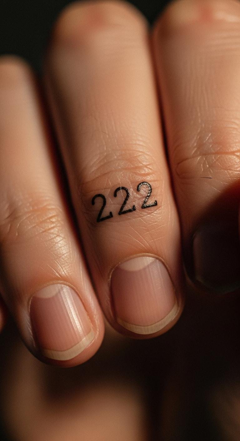 222 brings peace and even vibes. Use it if life feels off-kilter. Place it on your finger for a discreet touch. Mix in a small circle to show unity. Draw on your hand with a pen to test it out—free and fun. 222 stands for calm. Find an artist online for a session around $40. Add a leaf shape from household items to personalize. This way, you create something lasting without breaking the bank.