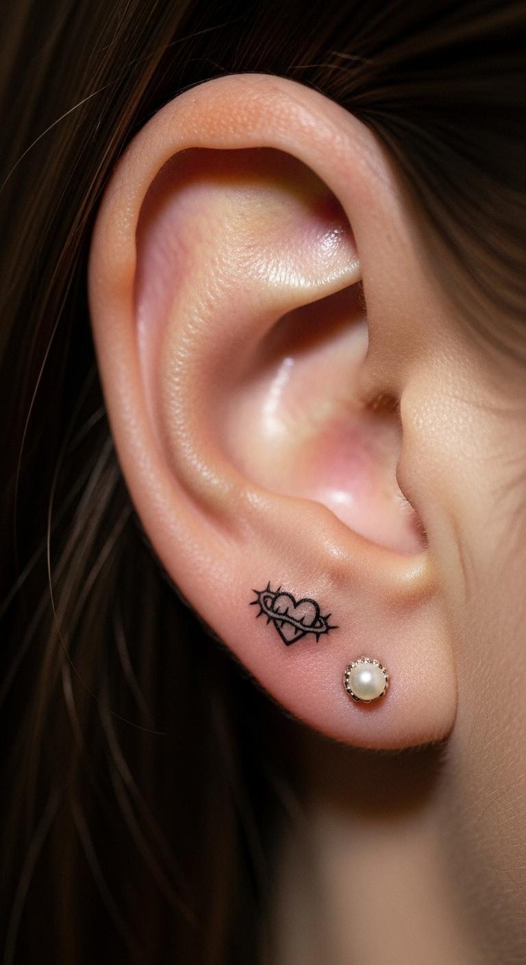 Micro hearts with thorns mix tenderness and strength. They’re subtle yet bold. Tuck it behind your ear. Draw tiny hearts at home. Find micro specialists for $40. Use fine-tip markers to practice. Add thorns for edge. This fits any budget. Easy sessions keep it simple. Apps help scale designs. It’s a discreet confidence boost.