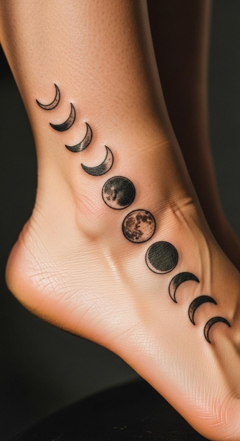 Moon phases represent change and power. This tattoo tracks your journey like the sky does. Line up the phases on your forearm or ankle. Sketch them at home using a circle template for accuracy. Look for budget artists who specialize in simple designs—many charge less than $80. Test with henna kits from the store to see how it feels. Keep the size small for quick sessions. Add a star for extra meaning. This design reminds you of your progress. Use online tools to mix colors affordably. Bold outlines make it stand out. It’s an easy way to feel confident daily.