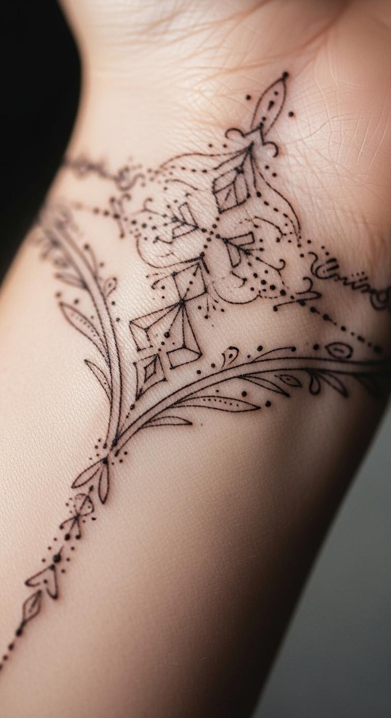 Fine-line wrist tattoos bring a simple elegance to your daily look. Think thin lines forming small symbols or patterns. These designs fit perfectly on a small space. Start with a basic sketch on paper to see how it flows. For budget tips, use free online apps to design your own before visiting an artist. A quick session might cost less than $100. Break it down: pick a design that matches your style, like a tiny chain of dots. Real DIY example: Trace a pattern with henna first to test it out. Keep it light and meaningful. This way, you get something personal without going overboard. Focus on clean lines for a polished finish. Add one element at a time for balance.