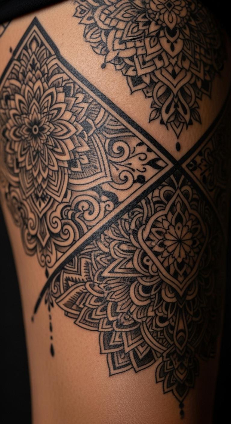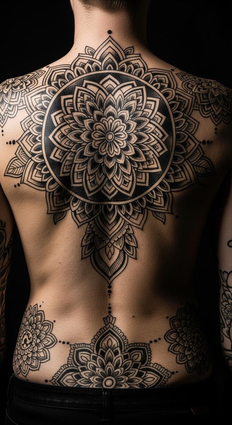 Mandala back tattoos symbolize balance with circular patterns. They span the back for a grand effect. Pick a design that centers on your spine. Save by getting a basic version, costing about $200. Real DIY example: Trace mandalas from books onto your skin with temporary ink. Build outward from the middle. This step helps visualize it. Use it for meditation moments. It’s an easy path to spiritual expression.