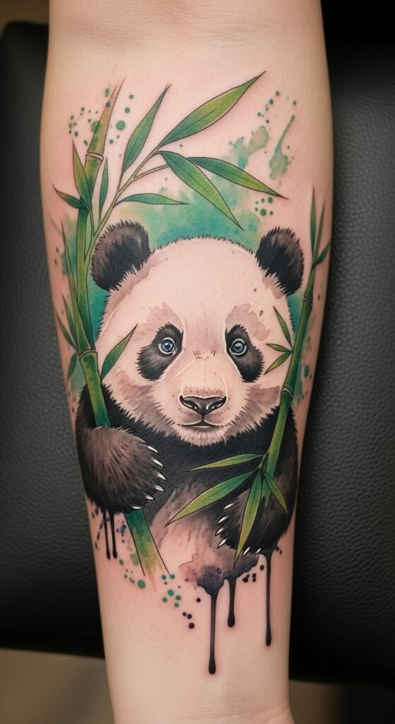 Add bamboo to your panda tattoo for a nature vibe.