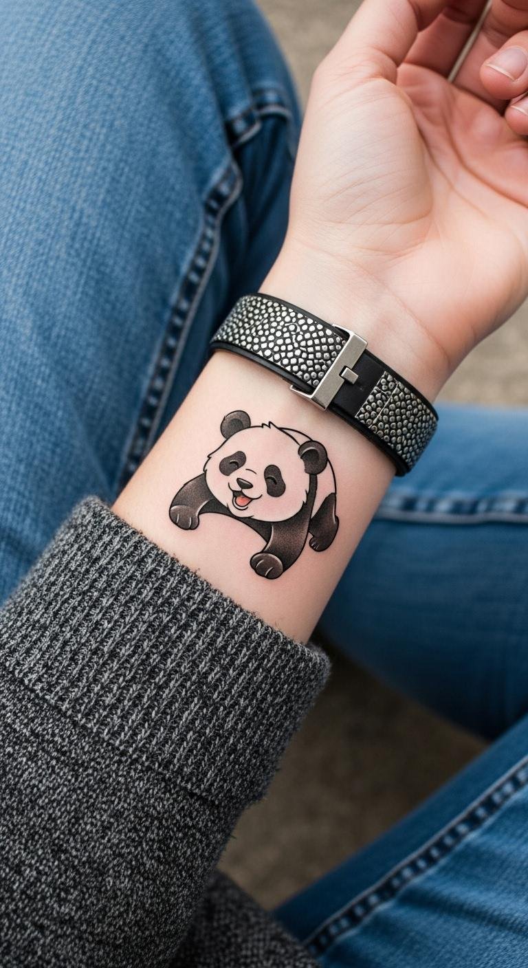 Minimalist Black-and-White Panda on Wrist