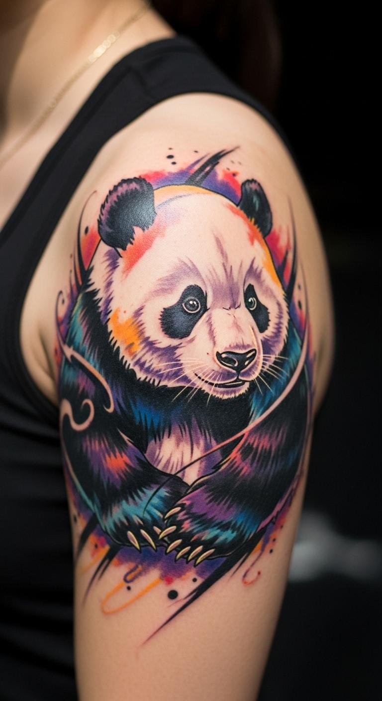 Vibrant Colorful Panda Tattoo
