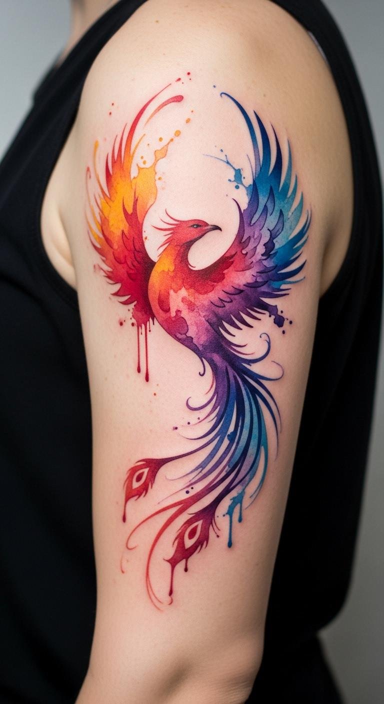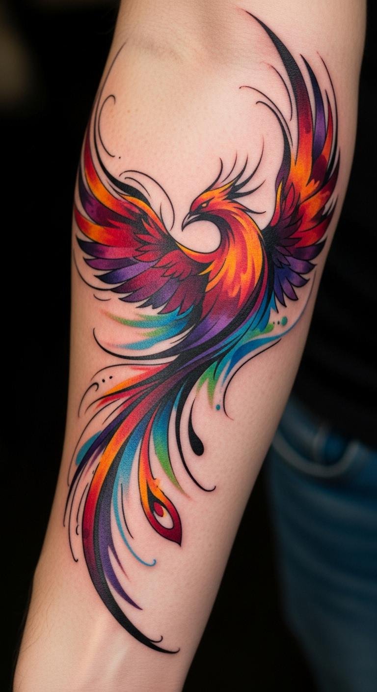 Go for flowing colors that mimic paint. This style creates an ethereal feel. Grab colored pencils and practice on paper first. Free apps let you layer shades easily. Pick reds and yellows for fire effects. Watercolor phoenix stands out. Keep it simple: start small on your arm. This saves money on ink. Add personal twists, like blending in a favorite hue. Visit a local shop with your design. They often have deals for first-timers. Turn it into a fun project with friends. Your tattoo will reflect inner change without overwhelming your budget.