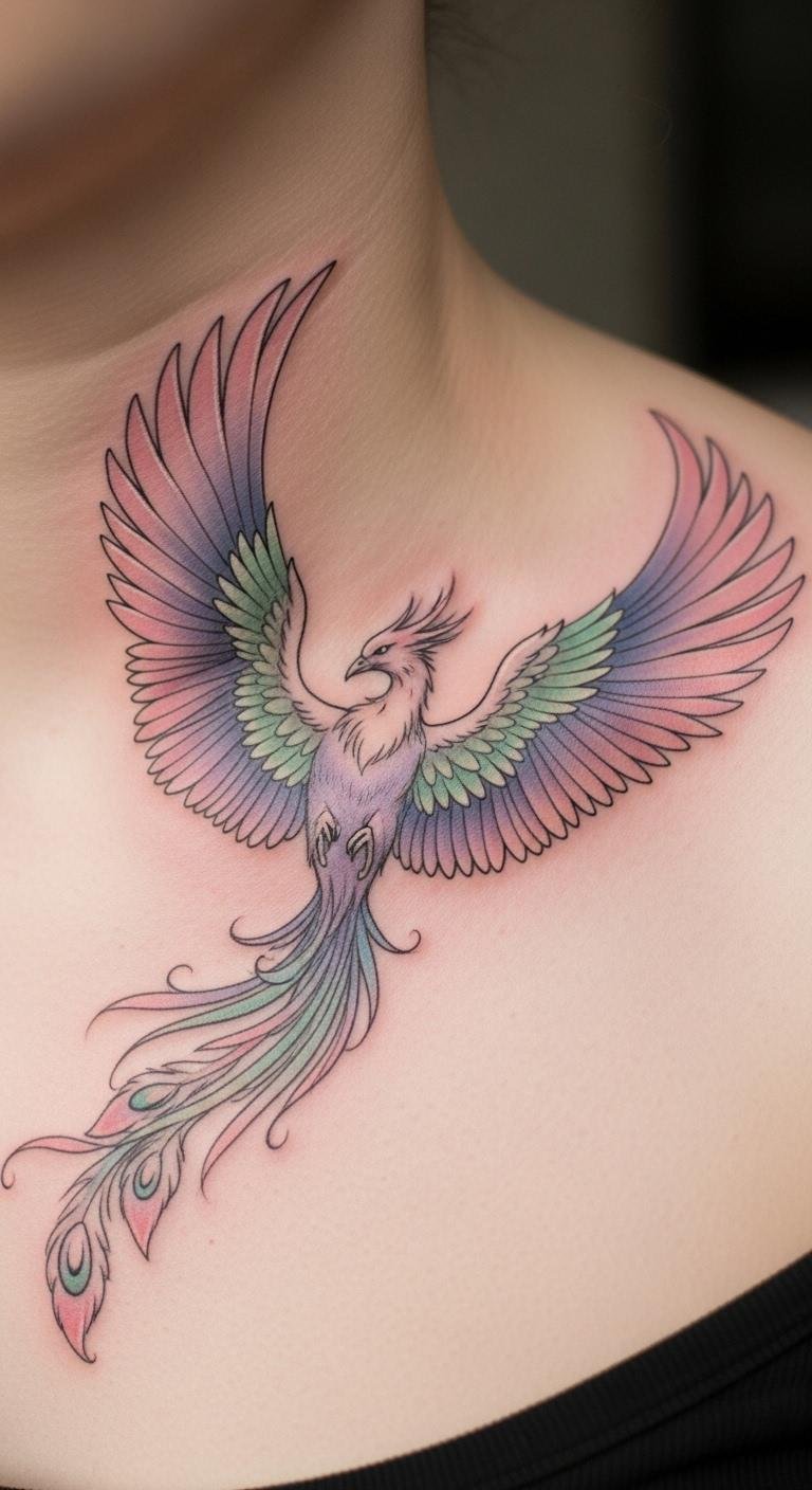 Soft hues make it dreamy and light. Perfect for a feminine touch. Experiment with pastels on paper. Apps mix colors effortlessly. Layer for a faded effect. Pastel phoenix feels calming. Choose a small area to keep cheap. Add a personal color mix. Find sales on light inks. Use makeup for trials. This design radiates quiet strength.
