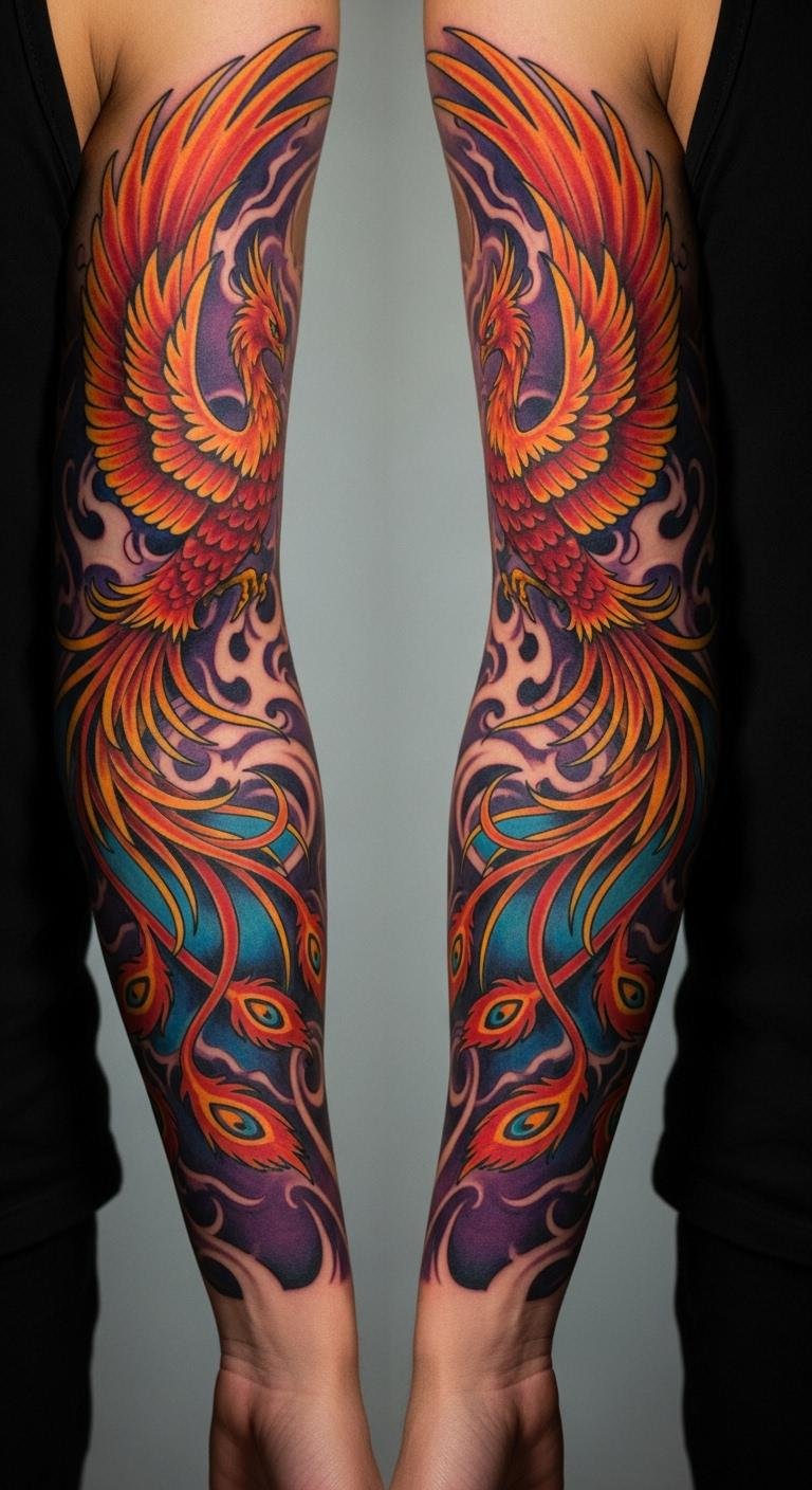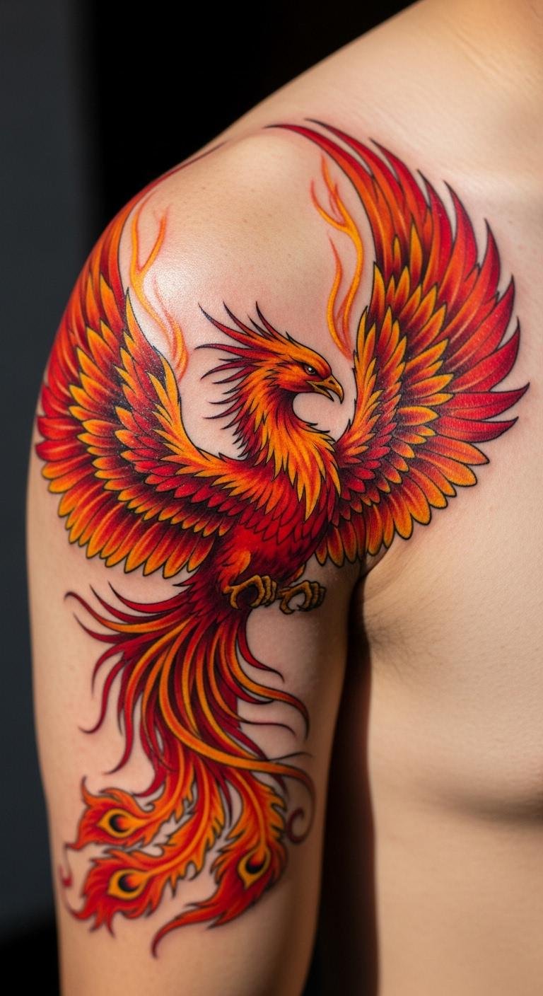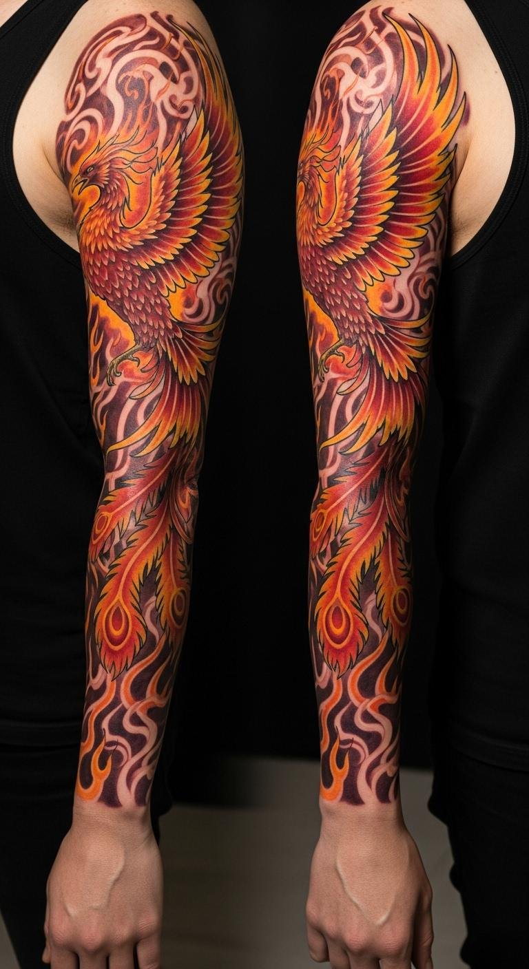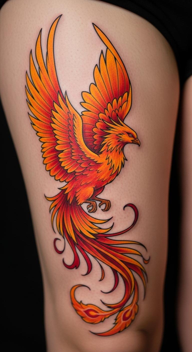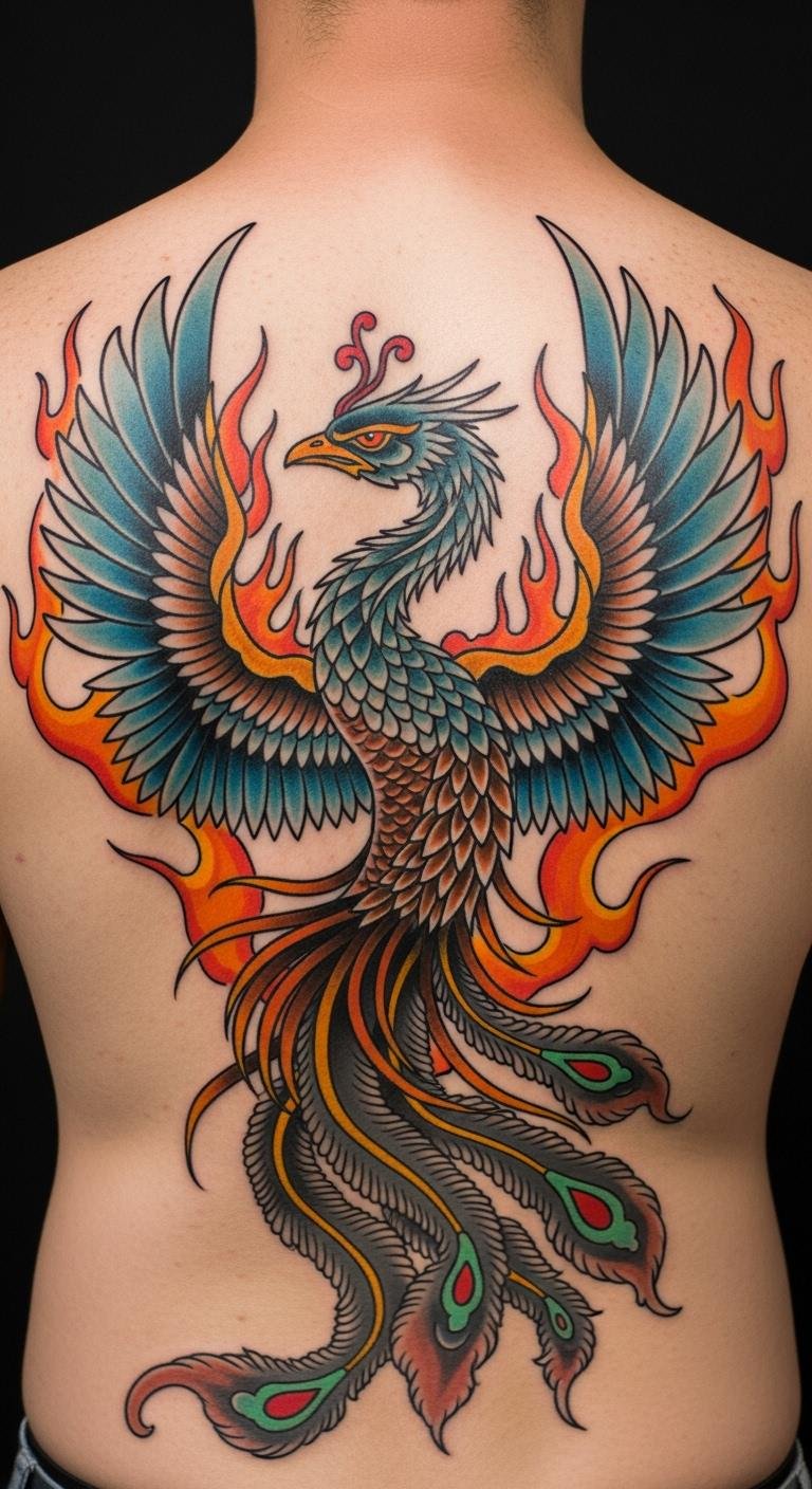 Bold lines and vivid shades make this style pop. Think classic with a modern edge. Draw rough outlines at home using pens. Online templates help for free. Focus on fiery reds for impact. Neo-traditional phoenix adds drama. Go for a medium size to keep costs down. Mix in elements like stars for fun. Find artists online who offer discounts. Practice with temporary tattoos first. This design empowers your story. Make it yours with quick tweaks.