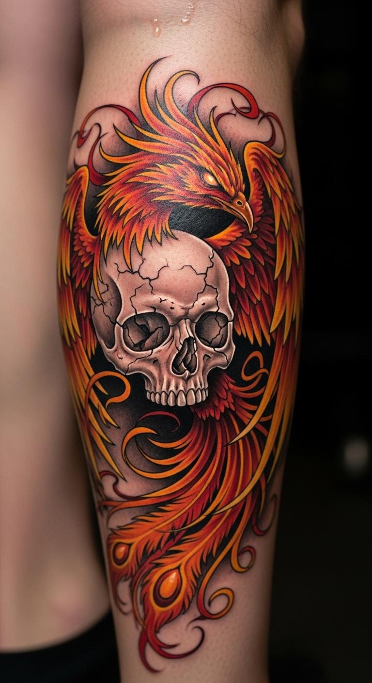 Add a skull for a rebirth twist. It mixes life and end. Draw both on a notebook. Online fusions make it simple. Use shadows for drama. Phoenix skull accent deepens meaning. Opt for a compact spot. Include your symbol ideas. Look for add-on deals. Test with drawings. This combo sparks reflection.