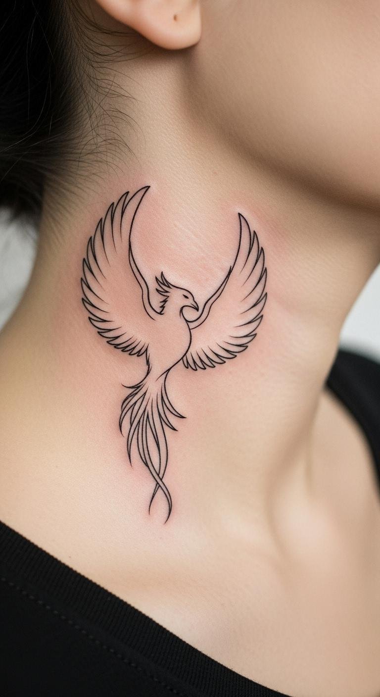 An outline on your neck keeps it bold yet hidden. It’s quick and striking. Sketch light lines at home. Free outline tools guide you. Use fine ink for precision. Neck phoenix outline pops. Go tiny to save. Personalize with curves. Check for quick sessions. Draw on mirrors. This spot empowers discreetly.