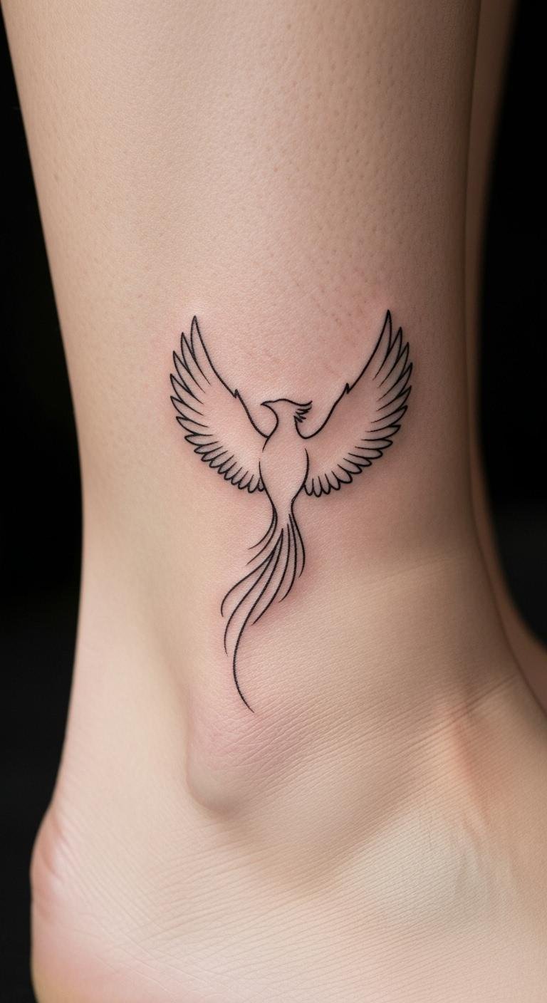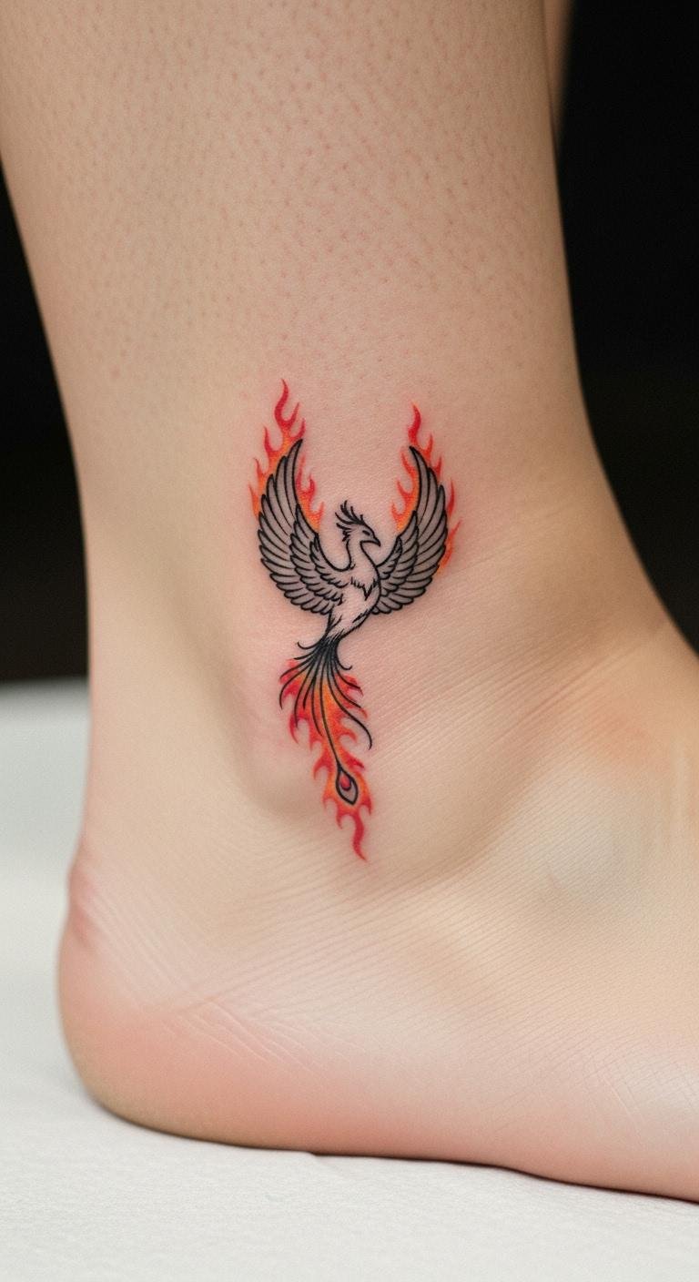 A discreet ankle design hides or shows as you like. It’s versatile for daily life. Draw it with a thin pencil first. Free apps scale it down perfectly. Use simple lines for ease. Ankle phoenix stays subtle. Pick a mini version for budget reasons. Add a flame twist for you. Find local flash tattoos cheap. Test with ankle bands. This tattoo keeps your story close.