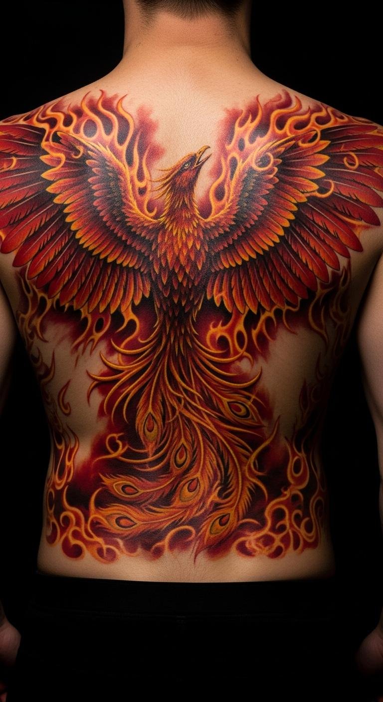 Cover your back with wings that soar. This design shows triumph. Map it out on large paper first. Use phone apps to preview placements. Layer flames for depth. Rising phoenix symbolizes breakthroughs. Break sessions into affordable parts. Include meaningful details, like a date. Search for artists with payment plans. Start with a smaller mock-up. Your back becomes a canvas of strength.