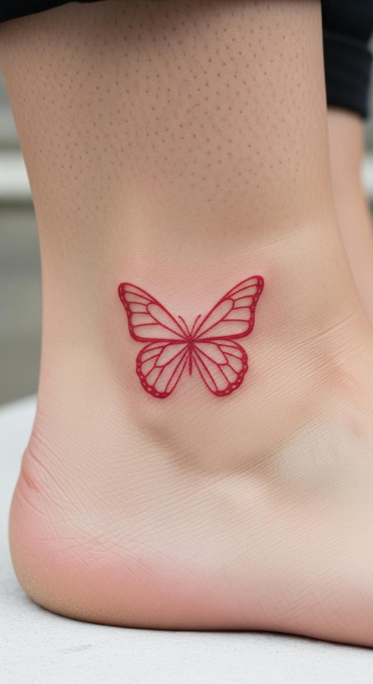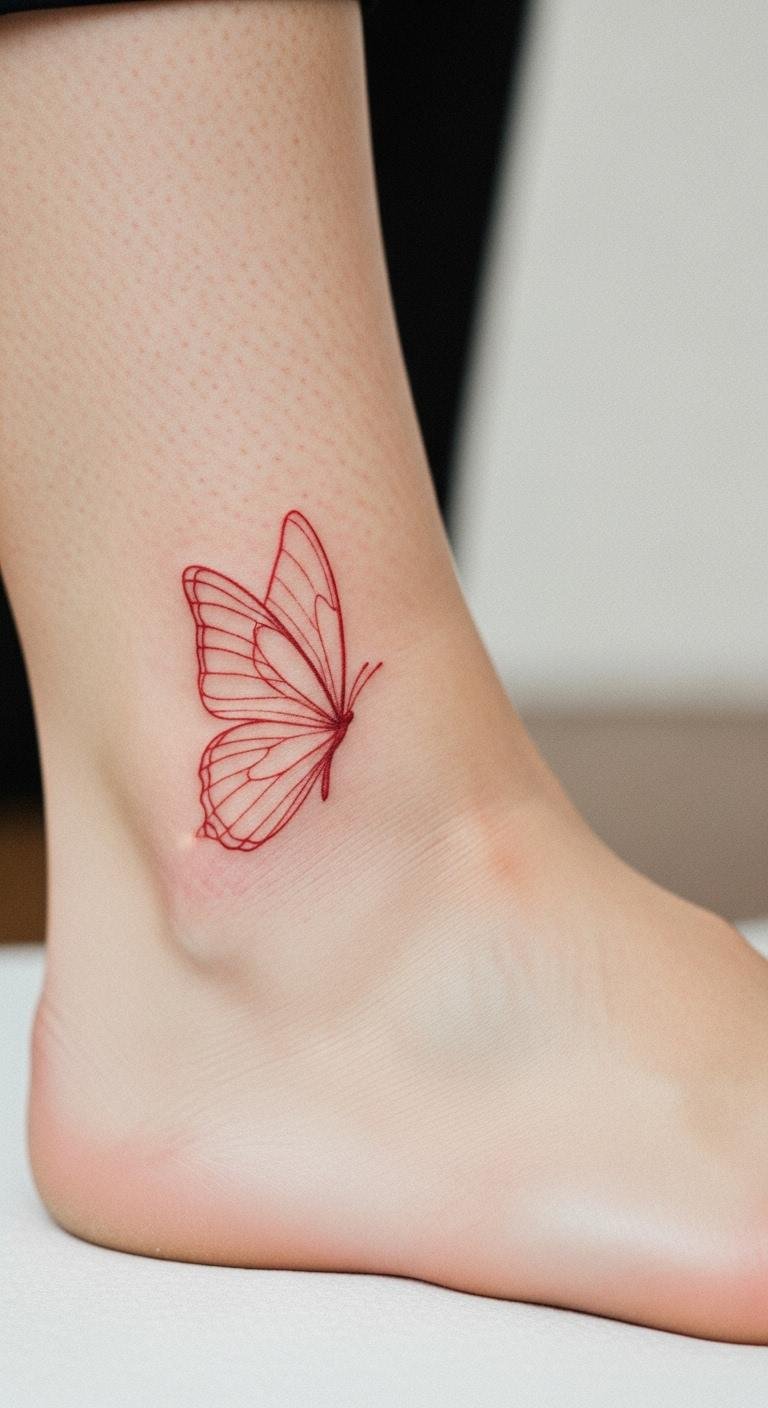 Ankle spots suit minimalist red butterflies perfectly. They stay hidden or shown. Quick sketches work well. Free minimal apps assist. This costs under $60. Test with ankle bands. Keep red simple.