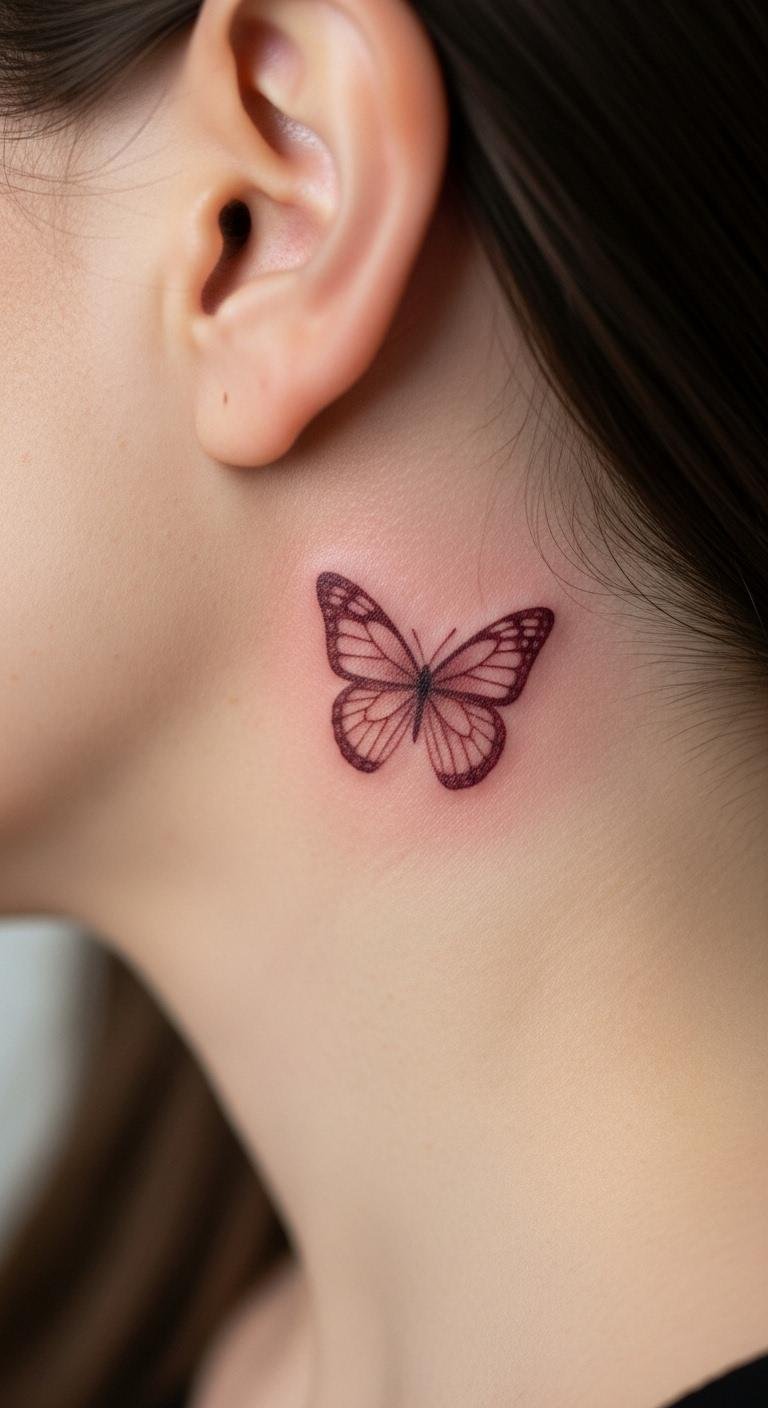 Minimalist designs keep things clean and understated. A red outline of a butterfly says a lot with little ink. Sketch it quickly on paper with a pen. Download free apps for digital designs to try at home. Local shops might offer this for under $60. Put it on your ankle for a subtle touch. Use red markers for temporary tests; they cost pennies. This style fits busy lives and heals fast. Add a small twist, like a curved wing, using household items for planning. Keep sessions short to manage discomfort.