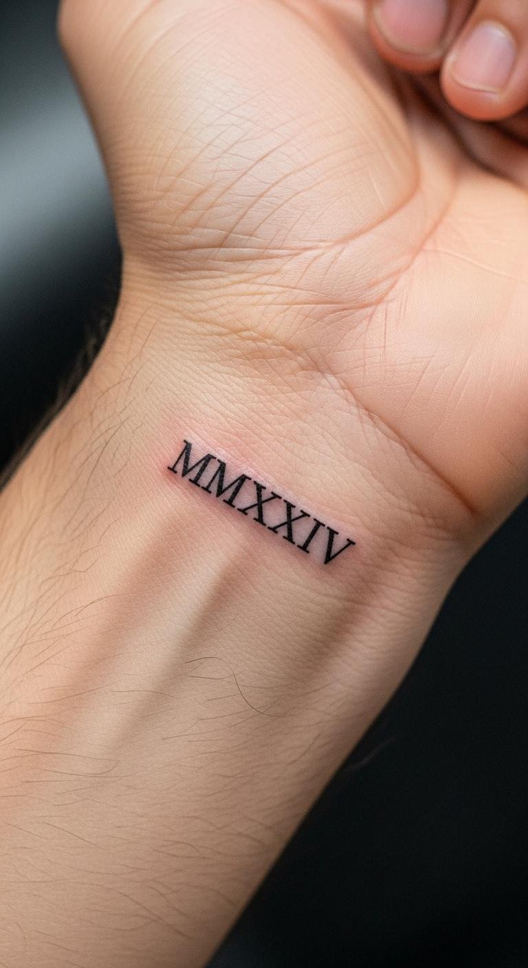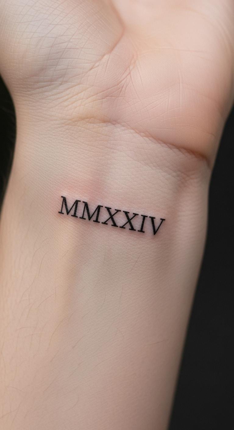 Go for a clean, simple design like MMXXIV on your wrist. This spot keeps things subtle yet visible. Pick a spot that’s easy to show off or hide. Start with a sketch on paper to test the look. Use free online converters to get the numerals right and avoid errors. For a budget option, draw it with a marker first to see how it feels. Add a small dot for extra flair without overcomplicating. This idea works for daily wear and adds a personal touch. Think about black ink for boldness. It’s quick and affordable at most studios. Pair it with your daily routine to make it meaningful. Focus on what matters most to you. Keep the process fun and straightforward.