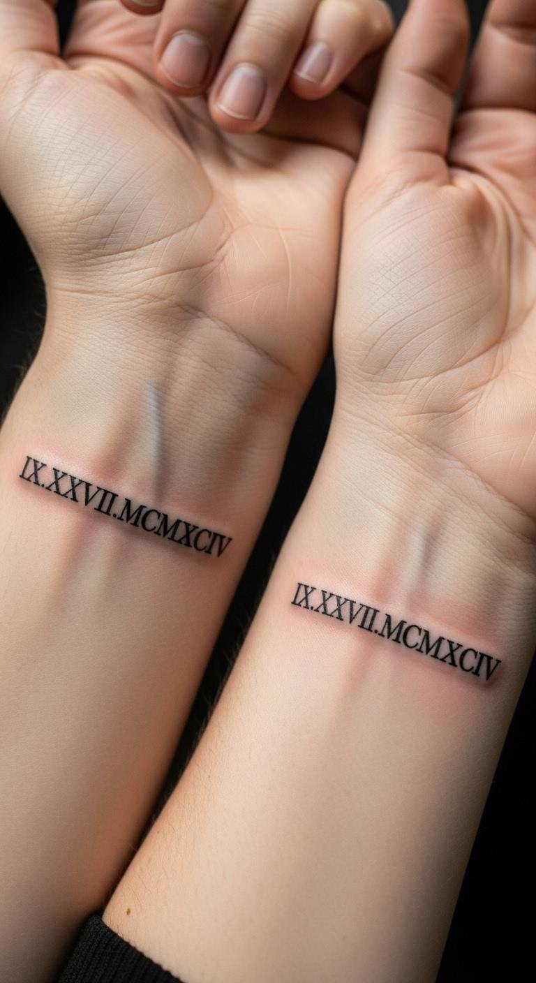 Get matching Roman numerals with your partner. Use fingers or wrists for easy pairing. Choose a date from your story together. Draw matching sketches to align ideas. Share free design apps to collaborate. Opt for identical sizes to keep it simple. This tattoo strengthens your bond affordably. Add a small heart for extra meaning. Focus on what connects you both. It’s a fun way to celebrate.