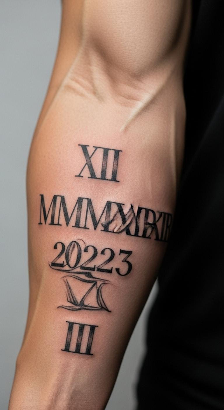 Go big with Roman numerals on your forearm for events. This spot shows off your story. Choose an event that shaped you. Sketch large versions on paper first. Use free tools to refine the look. Stick to black ink for simplicity. Add thickness for emphasis. It fits active lifestyles well. Make it your daily reminder.