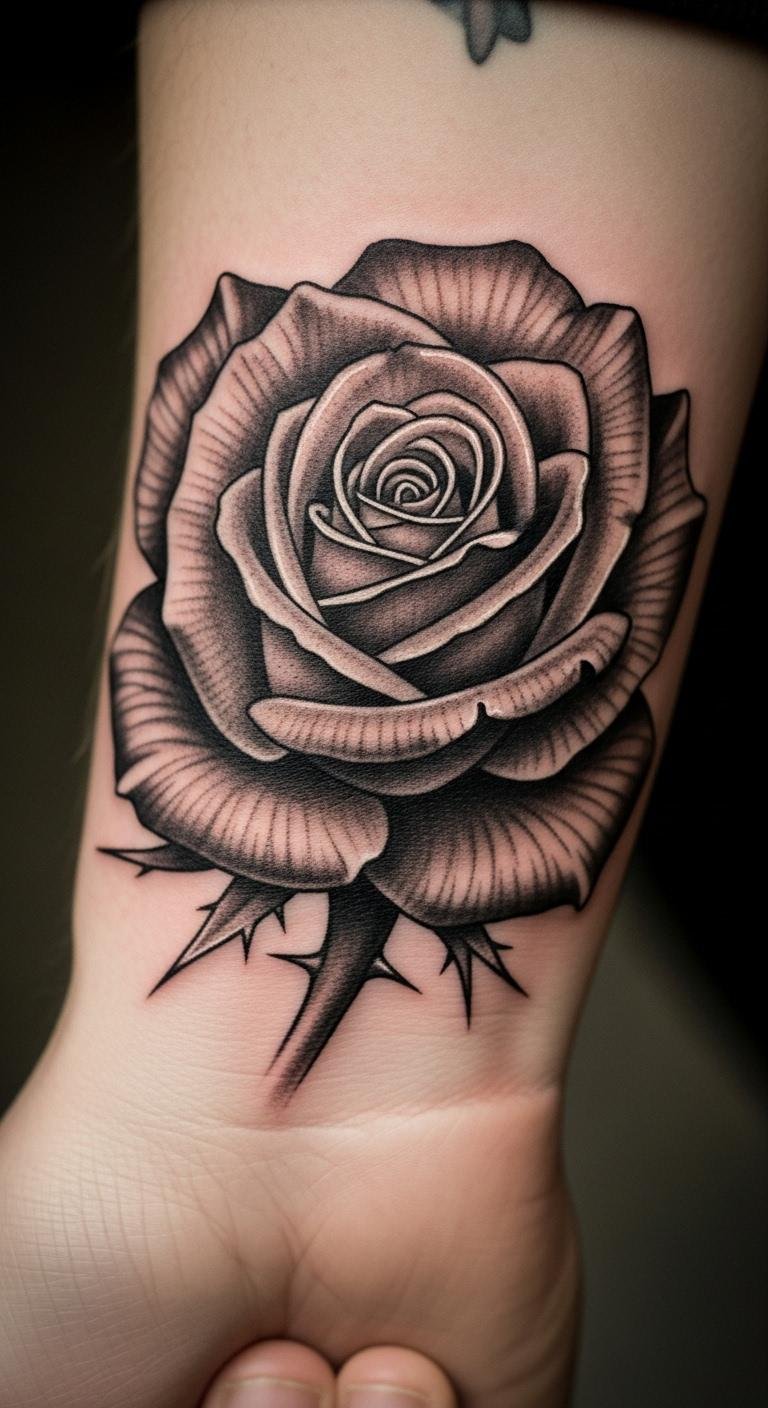 Black and Grey Realistic Rose on the Wrist