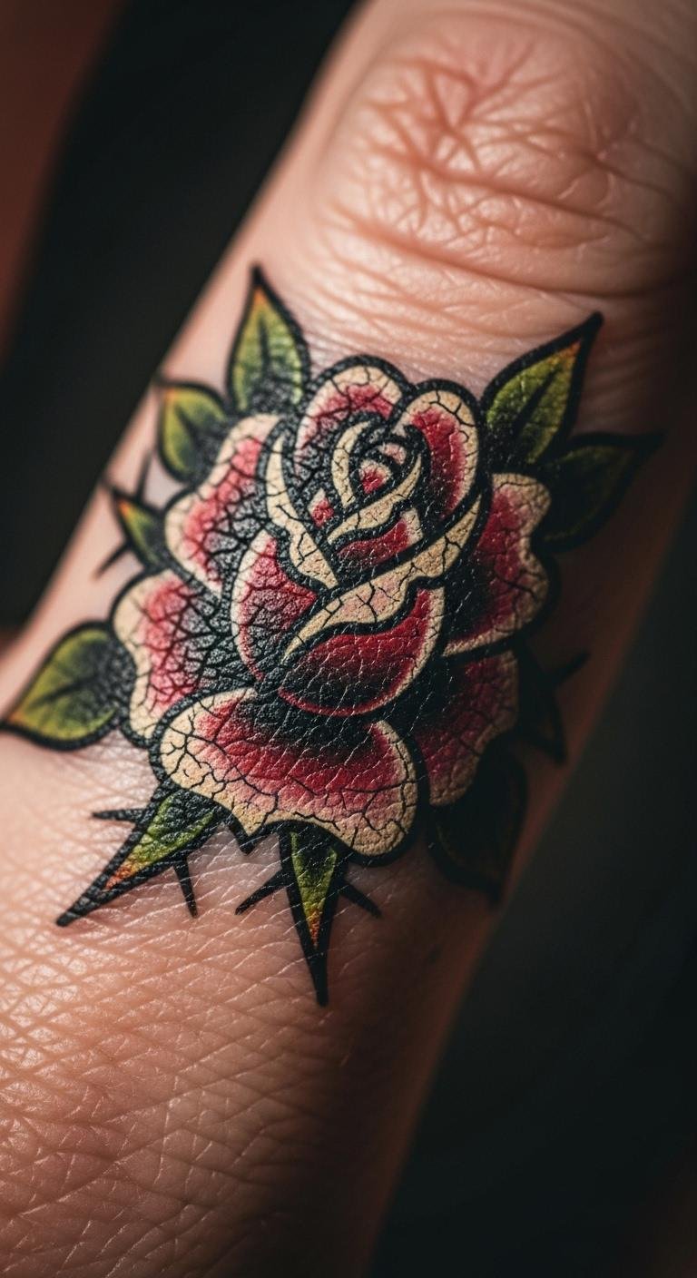 A mini rose on your knuckle adds a touch of elegance. It fits daily life without much fuss. Draw a quick outline at home with a pen. This lets you test the spot before committing. Find artists who charge by the hour and aim for under $50. They might use simple needles for this style. Grab a henna kit for $10 to try it out. Apply it yourself in minutes for a safe test. Schedule appointments on weekdays for lower rates. Share ideas with your tattooist to keep things straightforward. Opt for black ink to make it last longer without extras. Use phone filters to see how it ages. This approach keeps things affordable and simple.
