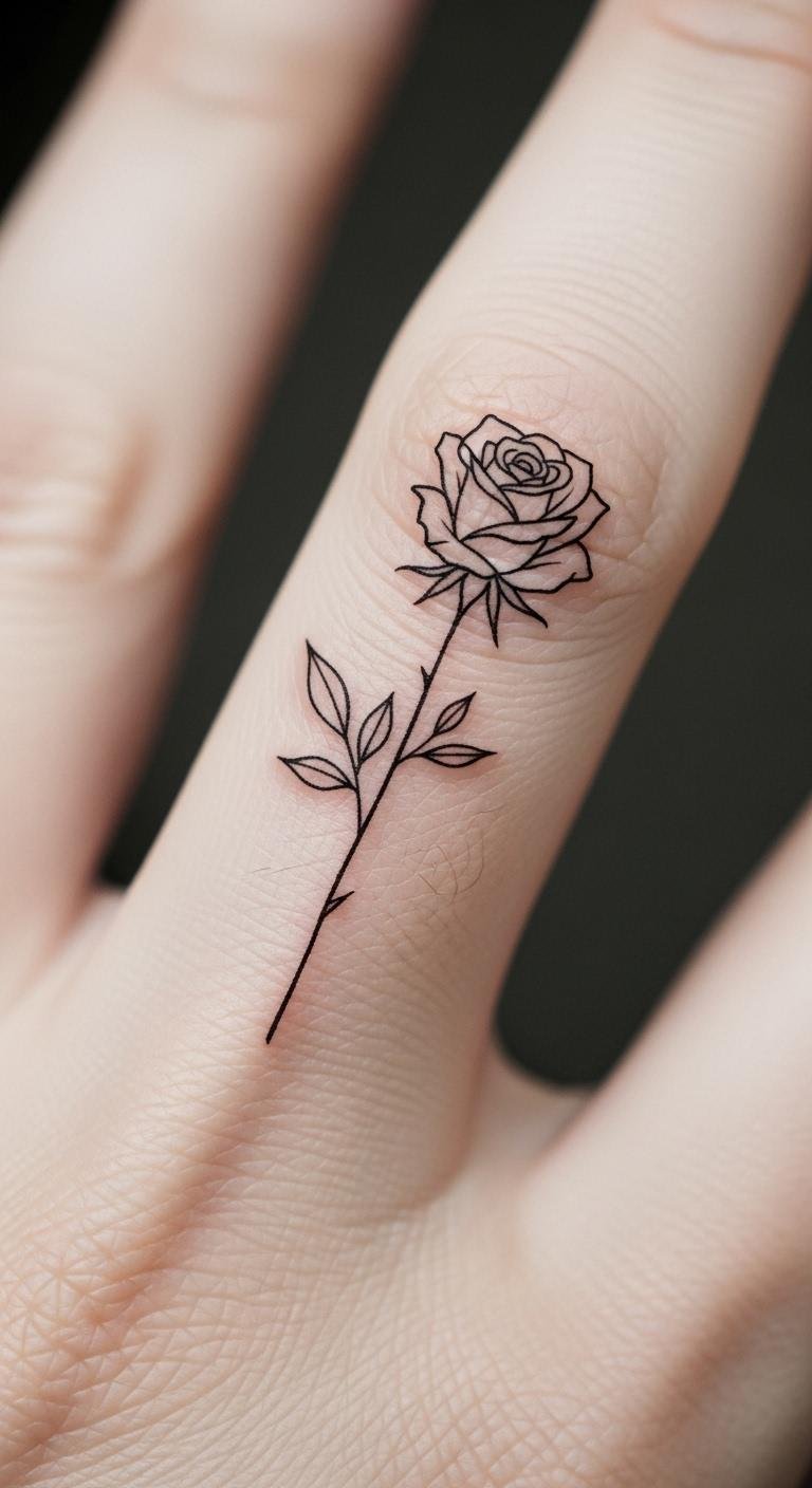 Fine-Line Rose Between Fingers