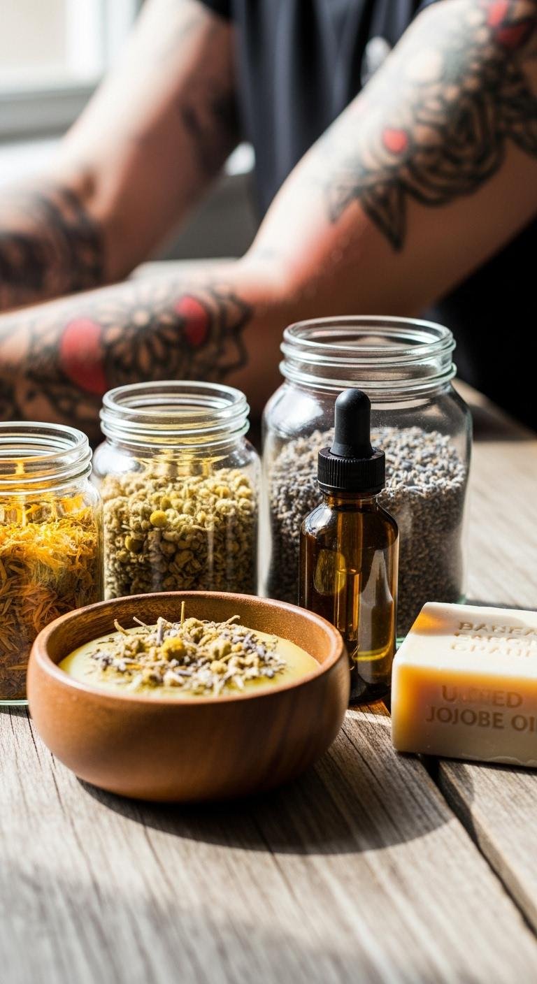 Rituals use herbs for healing. They soothe skin post-tattoo. Simulate by making a herbal mix at home. Use kitchen herbs. A tip: Apply to drawn designs. Bold the key: kitchen herbs. This mimics care simply.