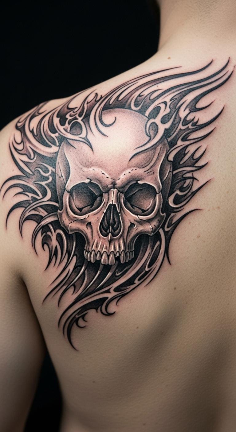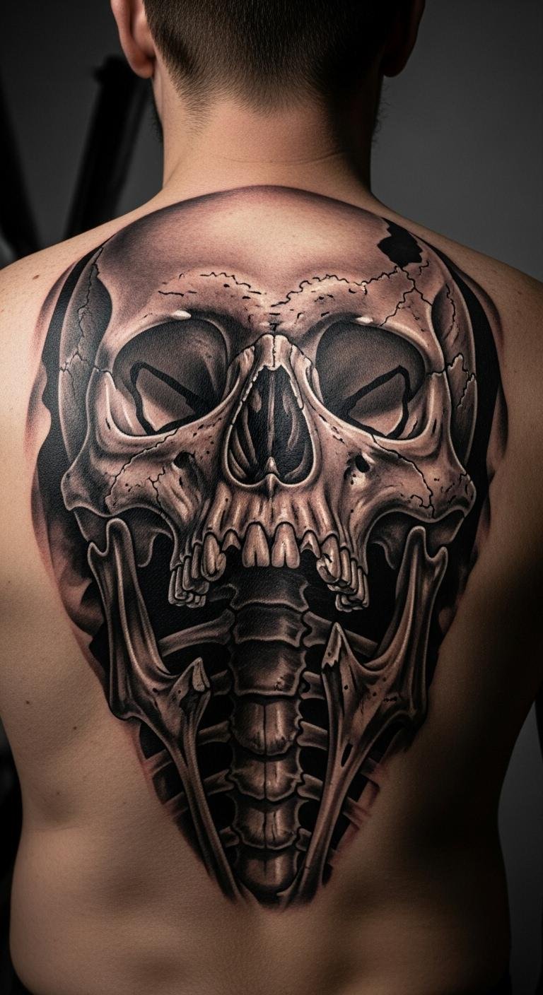 Large back skulls tell big stories. They need space to shine. Use detailed drawings for planning. Apps with body mapping assist. This area allows for complexity. Check for multi-session discounts. They spread costs out. Add elements like wings. Practice with wall murals. Paper and markers do the trick. Real example: tape sketches to your back and mirror-check. Ensure it fits. Go for phased tattoos to manage expenses.