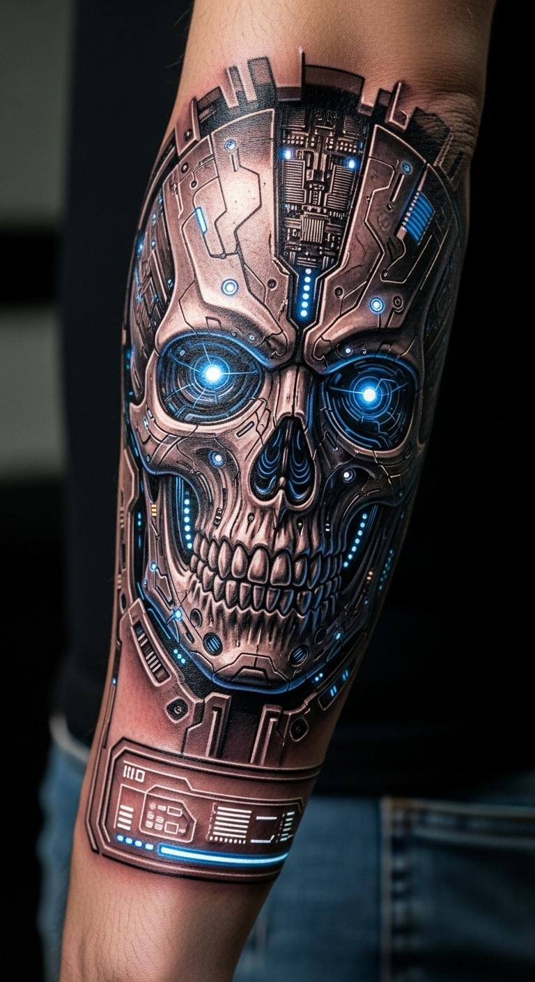 Tech-inspired skulls look ahead. They incorporate circuits and gears. Draw digital elements. Free sci-fi apps help. Put it on your forearm for tech vibe. This spot is modern. Look for emerging artist offers. Prices are competitive. Add wires for detail. Practice with circuit diagrams. Paper and pens work. Real tip: use LED lights to mock tech effects. Keep designs sleek for budgets.