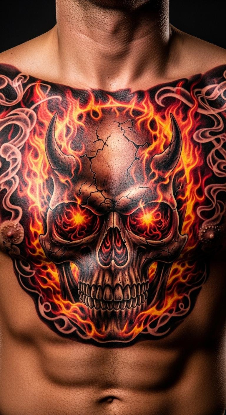 Flames around skulls add heat. They symbolize passion. Sketch fire patterns. Apps with flame effects help. Place on your chest for drama. It stands out strong. Seek fiery theme events. They have special rates. Include licks of fire. Try candle wax drawings. Simple and cost-effective. Real example: burn paper safely for inspiration. Capture the essence cheaply.