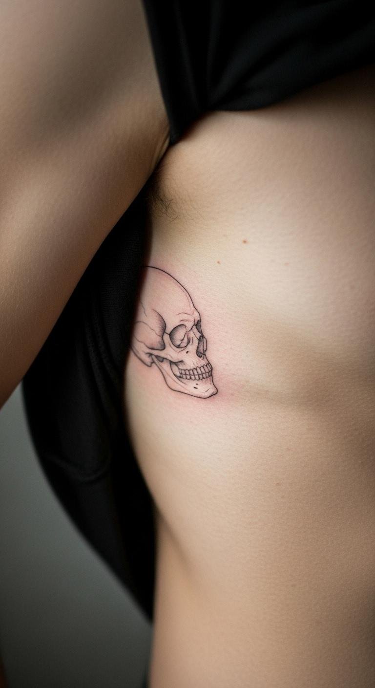Rib skulls stay private. They hold secret meanings. Draw inward designs. Free body apps help position. This spot is intimate. Seek hidden tattoo specials. They cost less. Add personal symbols. Practice with ribcage drawings. Use basic tools. Real tip: breathe through sketches to feel the area. Keep it discreet and cheap.