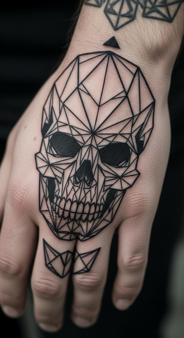 Geometric skulls offer clean, symmetrical vibes. They look modern and sharp. Start by drawing shapes on paper. Use grid paper for accuracy. Free design apps help align patterns. Put it on your wrist for easy viewing. This spot is less painful too. Find artists who do flash sales. They offer deals under $100. Mix in stars for added flair. Try string art as a DIY preview. It uses cheap supplies like thread. Real tips: trace designs with a marker first. See how it flows. Keep sizes small for budget reasons. These tattoos suit professional settings well.