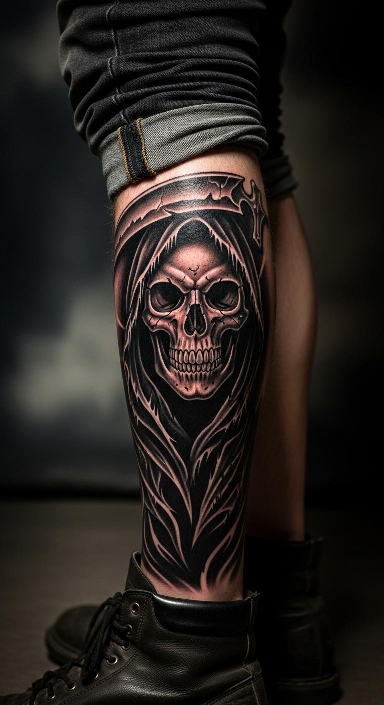 Grim Reaper skulls add a dark edge. They represent life’s end. Outline with dramatic strokes. Apps with horror themes assist. Choose your leg for coverage. It stays hidden if needed. Find flash day events for savings. Prices are often half off. Include a scythe for flair. Practice with shadow drawings. Paper and pencil work fine. Real example: use a lamp to cast shadows and sketch. It builds the mood. Aim for simple versions to save.