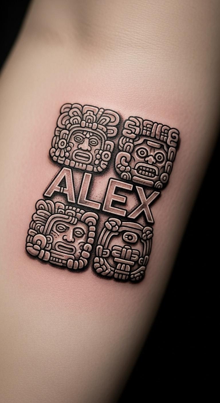Mayan glyphs make names timeless. Put a tiny one on your ankle. It adds personal depth. Write your name in block letters. Then, mimic glyphs with free fonts online. Print and trace for fun. Find artists who know cultural designs. They charge around $50 for small work. Use temporary stamps from craft stores. They cost pennies. Stamp it on and test the feel. Blend your initials into the glyph. Keep it straightforward. This honors tradition without complexity. You’ll have a custom piece that’s easy to get.