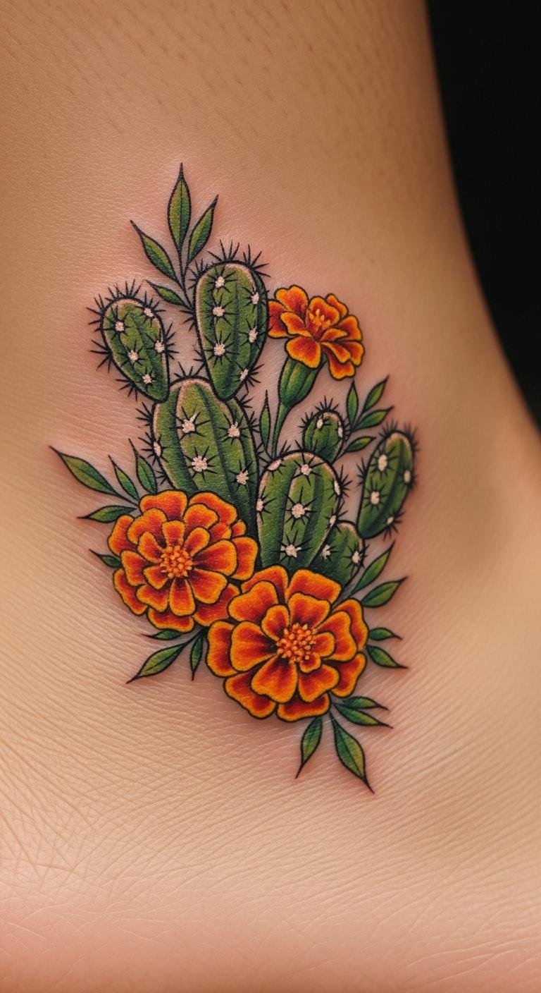 Cacti and marigolds show resilience. Place it on your wrist. They represent growth in tough times. Draw cacti shapes with a pen. Add dots for flowers. No supplies needed. Seek out street artists for low prices. Around $45 works. Use nail stickers as testers. They cost nothing extra. Mix in your birth flower. Keep designs basic. This idea is practical and fun.